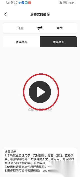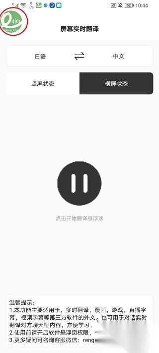 当我们启动所需的应用程序或游戏后,若遇到需要翻译的场景,只需点击界面上的绿色圆形图标,稍作等待,翻译结果便会在屏幕上呈现出来。