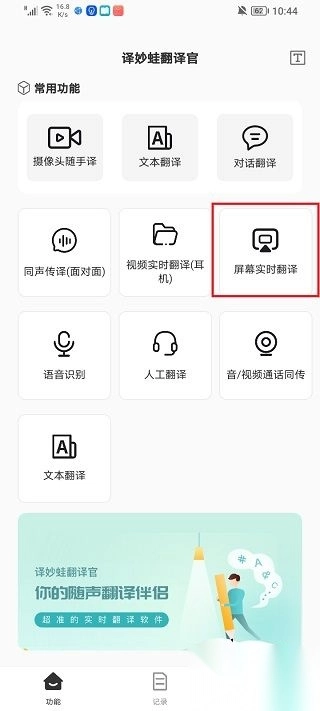 打开译妙蛙翻译官,选择屏幕实时翻译