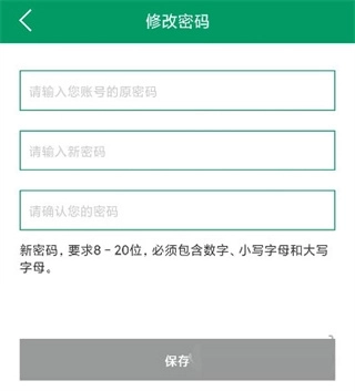 3、点击【修改密码】选项,先输入账号的原密码,接着设置新密码并再次确认,最后点击【保存】按钮,就能完成密码重置操作。
