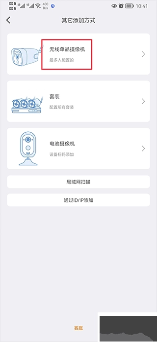 三、选择其他添加方式,如无线单品摄像机