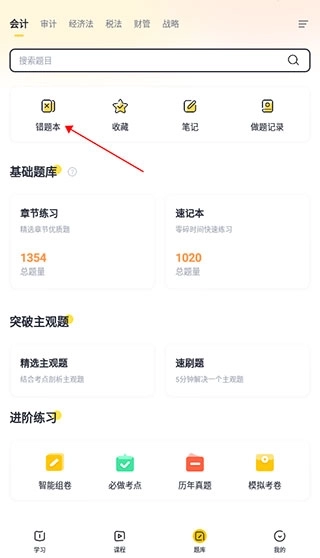3、点击页面上的“错题本”功能按钮,就能查看并练习错题。