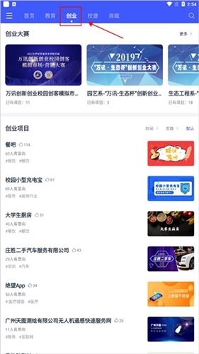 1、打开校园创客,点击“创业”分类;