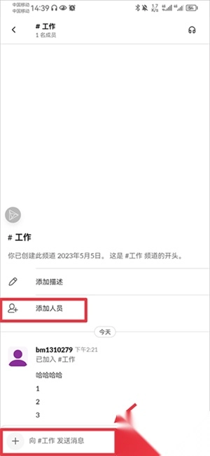 完成创建流程后,通过添加人员功能邀请团队成员加入,随后即可在群组内开展聊天互动、传输文件等操作。