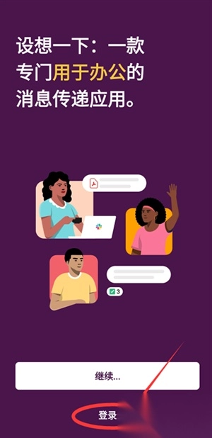 安装好Slack安卓版后,进入主页面并点击“登录”按钮。