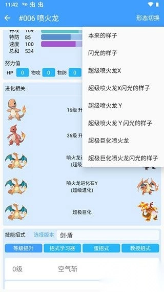 点击切换形态功能查看其他形态,浏览该形态下不同的属性资料
