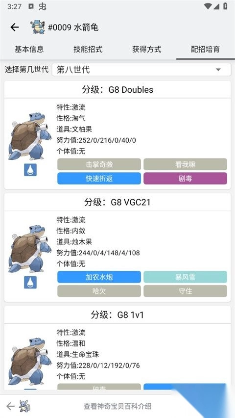 这时候就能看到宝可梦的配招了,不过不同世代的配招都是不一样的哦。