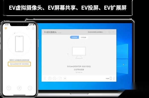 要实现手机作为电脑的扩展屏,需在手机和电脑上分别打开EV扩展屏应用,且两者必须连接到同一网络环境中。