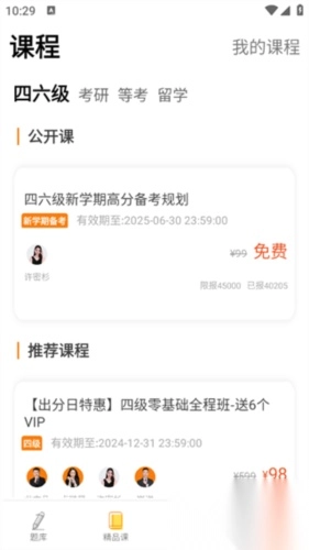启动该应用后,主界面会呈现考研相关知识的归纳内容。此外,还能通过历年词汇、临考预测题、分章节习题训练以及优质课程等板块开展学习活动。