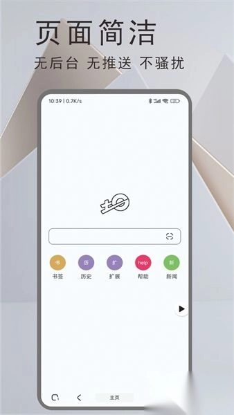 界面设计纯净简约,打开首页映入眼帘的便是一个搜索框,除此之外,没有任何新闻、广告或视频内容。