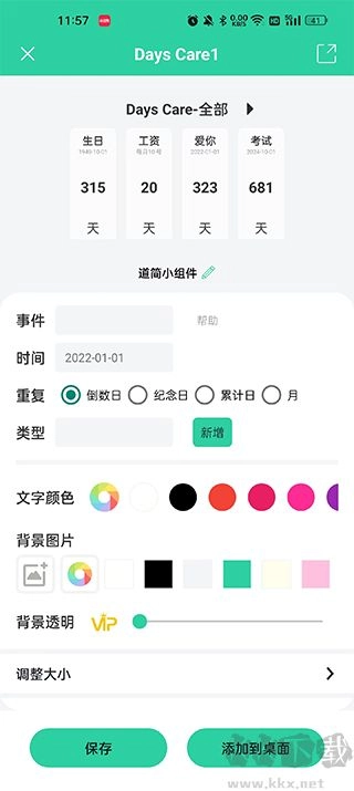 更改你喜欢的参数,点击添加到桌面即可设置成功。