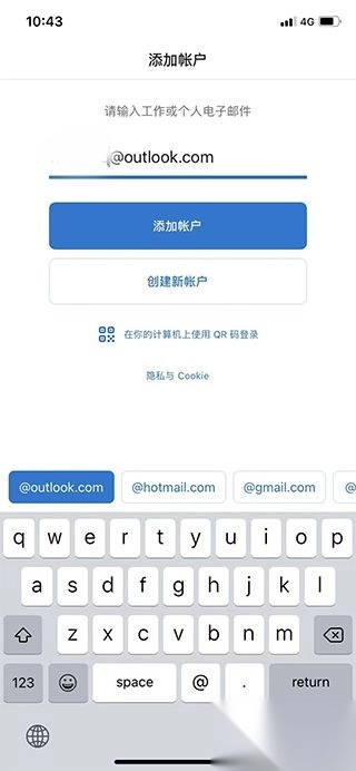 在设计用户交互界面时,若需添加新账户,需注意该类账户的命名规则:需以英文字符作为起始部分,完整格式示例可参考类似“xxx@outlook.com”的形式。