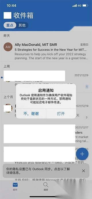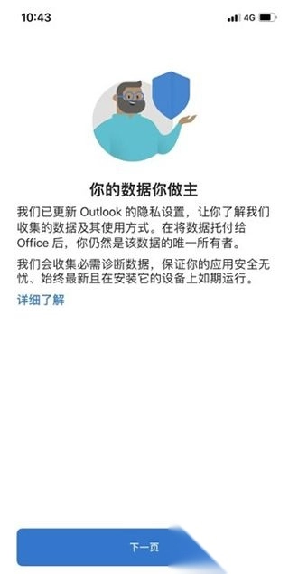 登录账号后,Microsoft 365版本的Outlook会弹出数据隐私相关的提示信息,依次点击下一页完成查看流程就行。