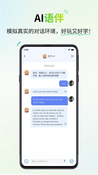 我们的语伴能够营造真实的对话场景,助力您在实际交流中学习西班牙语。您可以不受时间和地点限制地与AI对话,不必顾虑语法有误或是词汇储备不够。