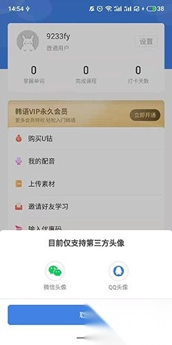 当前头像设置仅开放第三方渠道,可从微信或QQ平台选取个人头像使用。