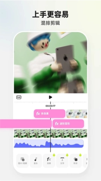 将多个视频、音频和图像图层混合在一起,实现更多样化的视频效果。你还可以将多个素材与效果混合编排在一起,创造出更加丰富的视觉效果,让你的视频更加生动有趣。