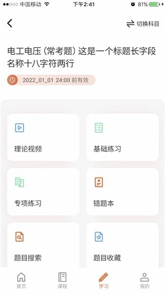学习过程中切换想要的科目内容就可以提供相关科目的学习资料