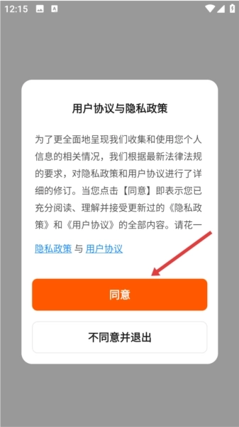 1、安装完成后进入,需在用户协议和隐私政策界面点击同意,接受相关条款后才能进入应用。