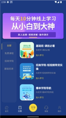 3、直播带货培训:一款专门针对直播带货场景打造的手机培训软件,系统且详尽的课程内容,助力用户掌握各类直播实操技巧。