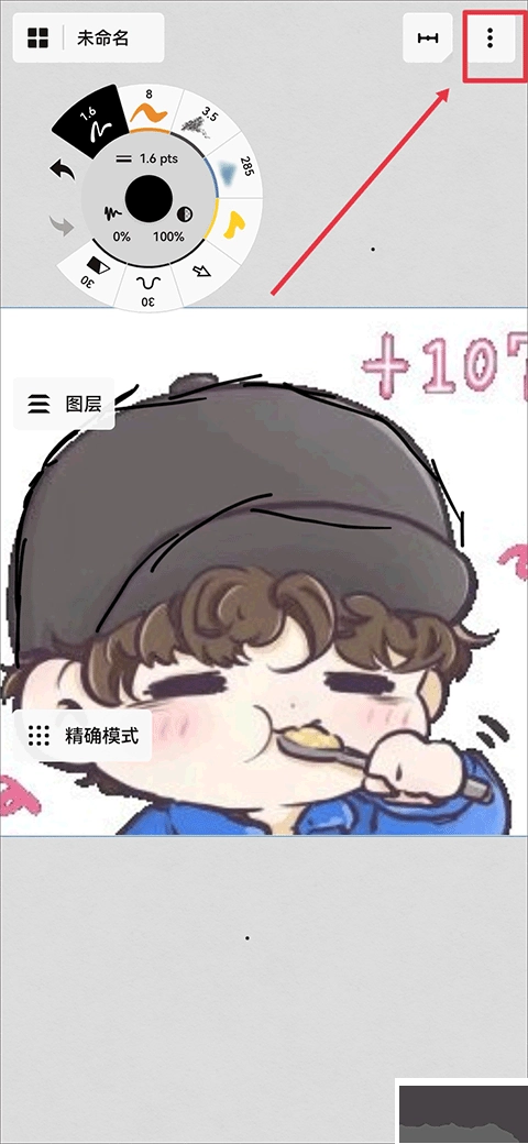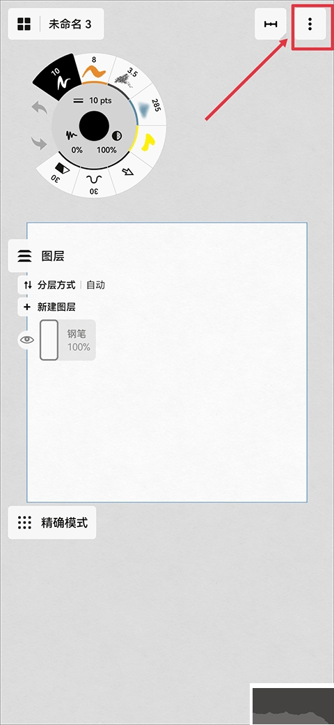 用户用感压笔画画时,手指可能会不小心碰到画板,进而触发手指相关的操作。要是觉得这一情况有影响,也能选择关闭该功能。具体操作首先是点击界面右上角的三点图标。