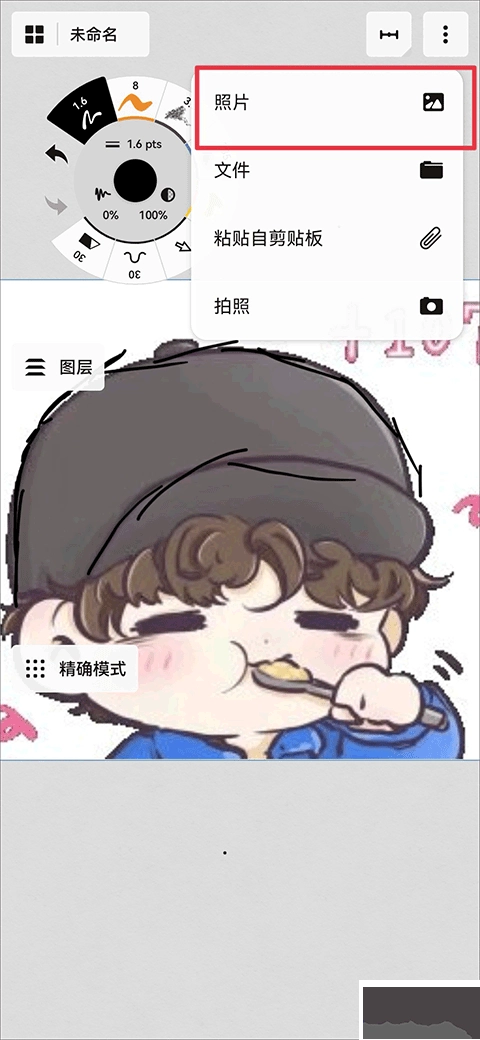 在绘图界面里,若想导入图片,可随时点击右上角的三点图标来完成操作。