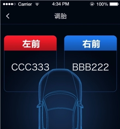 绑定设备后安装到轮胎上的编号可能会出现对应错误,这时只需点击2个胎压编号即可,调胎完成后即可进入使用首页;