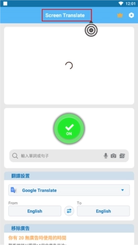 1、打开ScreenTranslate屏幕翻译器,首先点击红色OFF键;