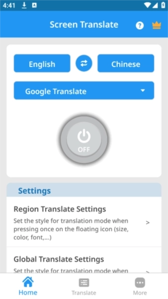 ScreenTranslate是一款最新上线了多功能实时手机屏幕翻译,为用户带来非常好用的翻译功能,操作简单易上手,能够随时随地的翻译出现在屏幕上的外语内容。软件内的翻译功能覆盖了十数中外语,英语、日语、法语、德语、意大利语、西班牙语等多种语言都可以进行快速的翻译。当它们出现在你屏幕上时,可以开启悬浮功能,快速将其进行翻译,即使是在玩游戏、看电影的过程中也可以进行翻译。