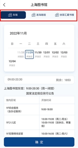 2、进入预约服务界面后,在上方选择想要预约的图书馆
