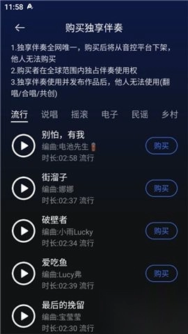 这里有海量的免费伴奏资源,让你无需自己学习编曲就能轻松使用。这些伴奏覆盖了流行、说唱、摇滚、古风、民谣、电音、弹唱等多种音乐风格,选择后可以立即使用。未来,我们计划吸引更多的编曲人加入这个平台,为用户带来更多高品质的伴奏。不过,这部分新增的优质内容可能会在未来收取一定的费用,毕竟编曲老师们也需要生活。