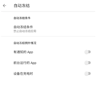可以开启自动冻结功能,设置好相应条件后,系统会自动将满足条件的应用冻结,既节省时间又省去不少麻烦。