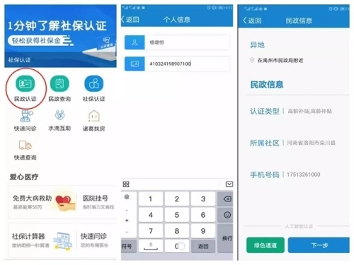 方法(1):打开“看看民政”软件,点击民政认证,先录入老人信息,然后点击下一步,