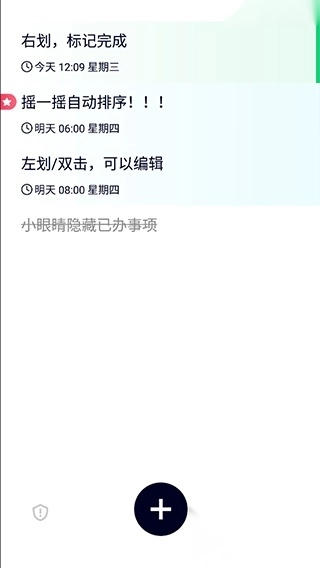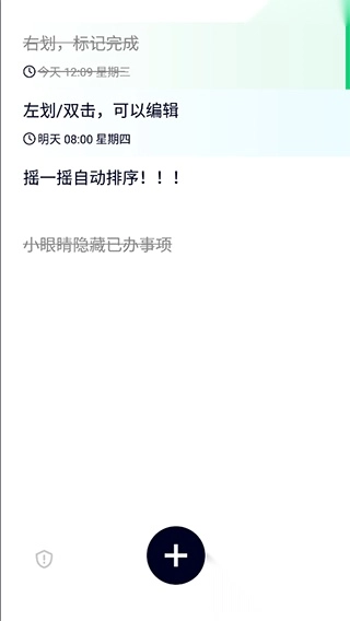 进入极简清单应用后,添加记录清单只需点击界面上的加号按钮;若要修改或补充清单内容,直接点击对应的任务项即可操作;查看任务时,通过滑动屏幕就能浏览。各项功能都设有专属按钮,操作便捷直观,用户能快速上手使用。