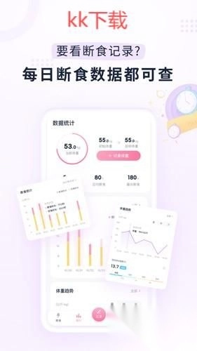 以直观的数据图表呈现每日间歇性断食的进展,结合断食时段的精准记录与体重数值的持续追踪,让身体在不同阶段的细微变化一目了然。
