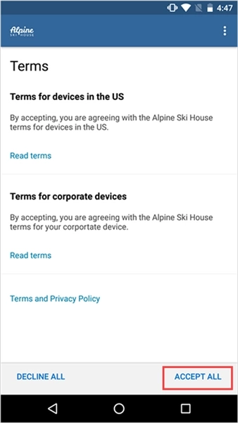 4、依据Android系统的版本不同,系统或许会提示你授权允许访问设备的部分功能或区域。这些提示是Google方面的要求,并不在Microsoft的管控范围内。