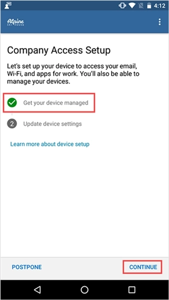8、组织或许会要求你更新设备设置。点击“解决”来调整相关设置。等设置更新完成后,再点击“继续”。
