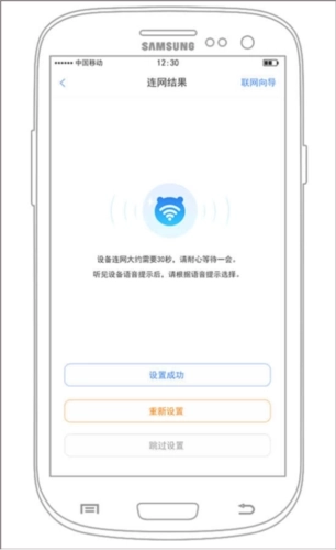 第四步:耐心等待设备完成联网操作,随后依据设备发出的语音提示,手动对联网结果进行选择。