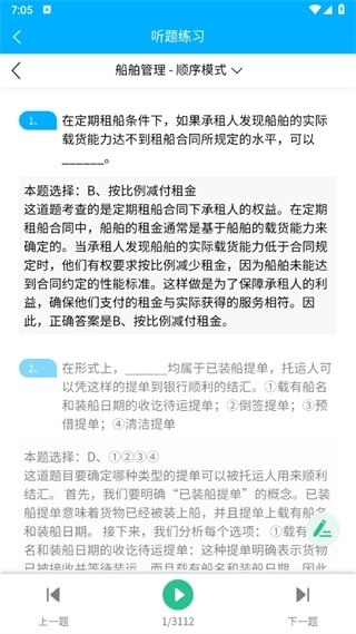 【船员英语听力与会话练习】:提供语音听力听题模式及英语听力与会话练习,点击即可播放题目,解放双眼,随时随地在线学习。这对于没有时间看题的海员、船员来说是一个非常实用的功能。