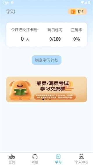 3、来到学习的页面中可以制定学习计划,并进行打卡;