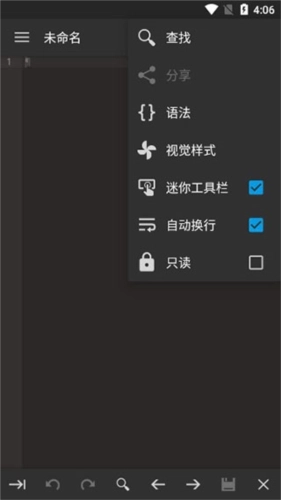 5、点击左上角的设置菜单,在其中我们能够查看书签,还可以对程序进行设置,比如文本的显示方式、代码的字号大小以及应用的主题风格等。