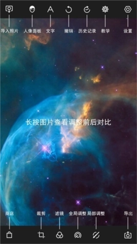指南:点击“指南”选项,软件会一一介绍画面中调整工具的使用方法和调整作用,帮助我们更快的掌握软件。
