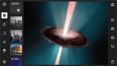在引导教程面板下,一共包括了泼辣百科、学习去雾、学习白平衡、学习失真、学习曝光、学习全局调整、学习圆形调整、学习渐变调整、学习选色调整、学习笔刷、开始使用、键盘快捷键十二个选项。