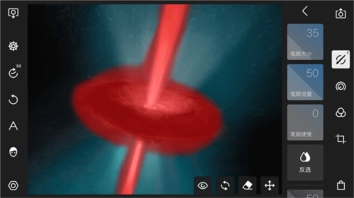 利用笔刷功能,可以手动绘制调整区域,所有的调整只会影响到这些区域。当选中笔刷工具之后,可以使用手指绘制一个区域,在绘制过程中,会有一个红色的区域出现,这些区域就表示被选中的区域。