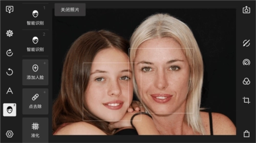 泼辣修图人像面板下,一共包括了智能识别、添加人脸、点去除、液化四个大类。