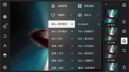 泼辣修图提供了多组滤镜预设,包括现代叫拍、艺术胶片、负片等多组胶片预设,也包括动态细节、季节、日系等多组非胶片预设。