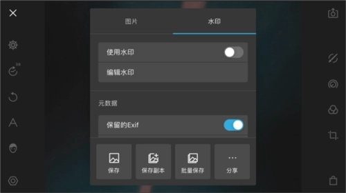 通过导出照片功能我们可以对导出的照片进行设置,包括图片、水印两个大项。