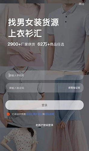 1、打开衣衫汇客户端,选择手机号快捷登录即可。