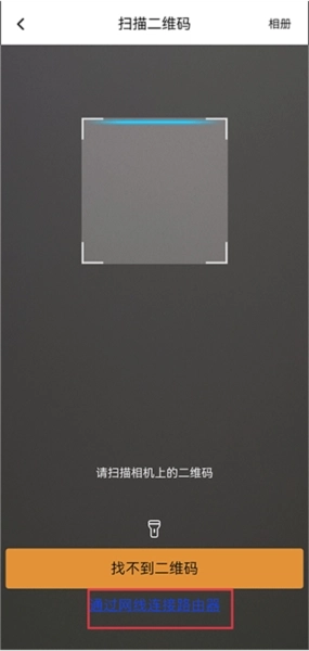 3、把手机对准摄像机上的二维码扫描添加设备,要是扫描不成功,也能点击下方通过网线连接路由器的方式来完成添加