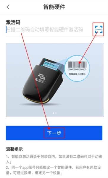 最后用户就可以选择输入设备码或者直接扫描设备上的条形码来完成设备绑定啦!