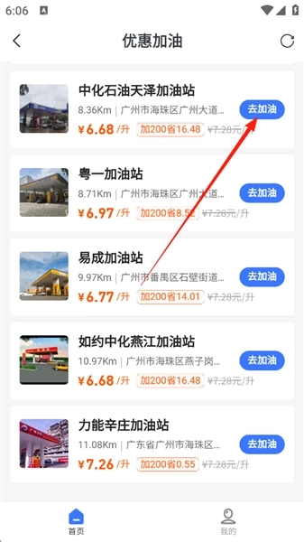 3、挑选到合适的加油站之后,点击【去加油】即可