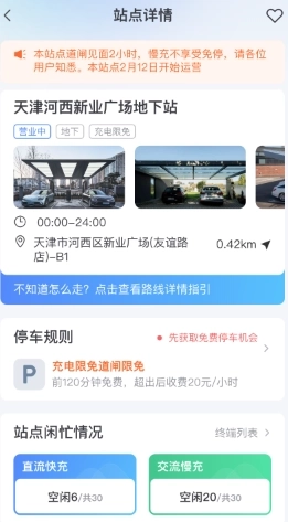 可查看充电站点的充电价格、空闲充电枪口、具体地址以及相关图片等详细信息。